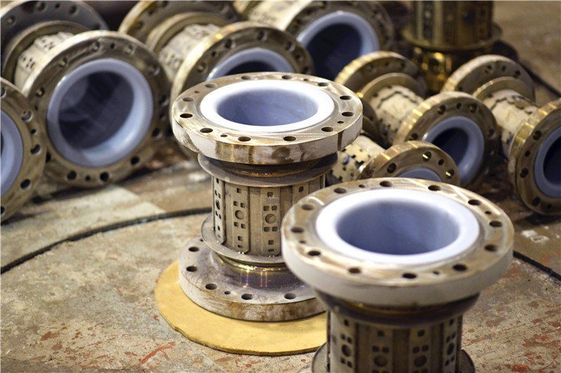 篩網(wǎng)式鋼襯四氟管線鋼斜管設有網(wǎng)孔,鋼斜管內(nèi)外壁緊密覆蓋襯四氟層,內(nèi)外壁上的四氟乙烯層通過網(wǎng)孔粘合。篩管鋼襯四氟管道主要由鋼支撐作為底模,強度好,不易變形和斷裂,耐腐蝕性能完全滿足生產(chǎn)工藝要求。同時,它還具有重量輕、安裝維護方便、價格便宜、使用壽命長的特點。該金屬絲網(wǎng)包括金屬絲網(wǎng)體和焊接腳,金屬絲網(wǎng)通過焊接腳焊接在管道內(nèi)壁上固定在管道內(nèi)壁上,金屬絲網(wǎng)體與管道內(nèi)壁之間留有間隙。這種結構的管道可以防止附著在管道內(nèi)壁上的四氟材料層在加工和使用過程中收縮變形而導致管道內(nèi)壁嚴重脫落。
